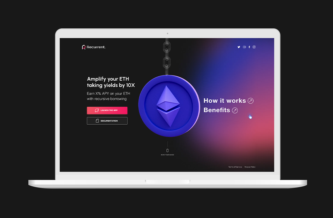 Recurrent é uma corretora de crypto do Canadá. Eles queriam uma landing page direta, rápida e criativa. A ideia foi trabalhar uma interação com o mouse.